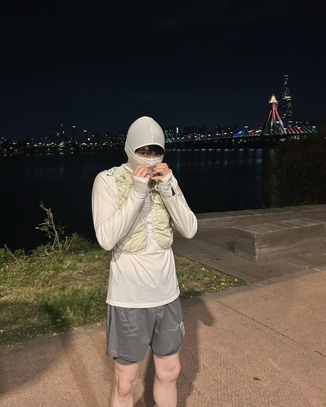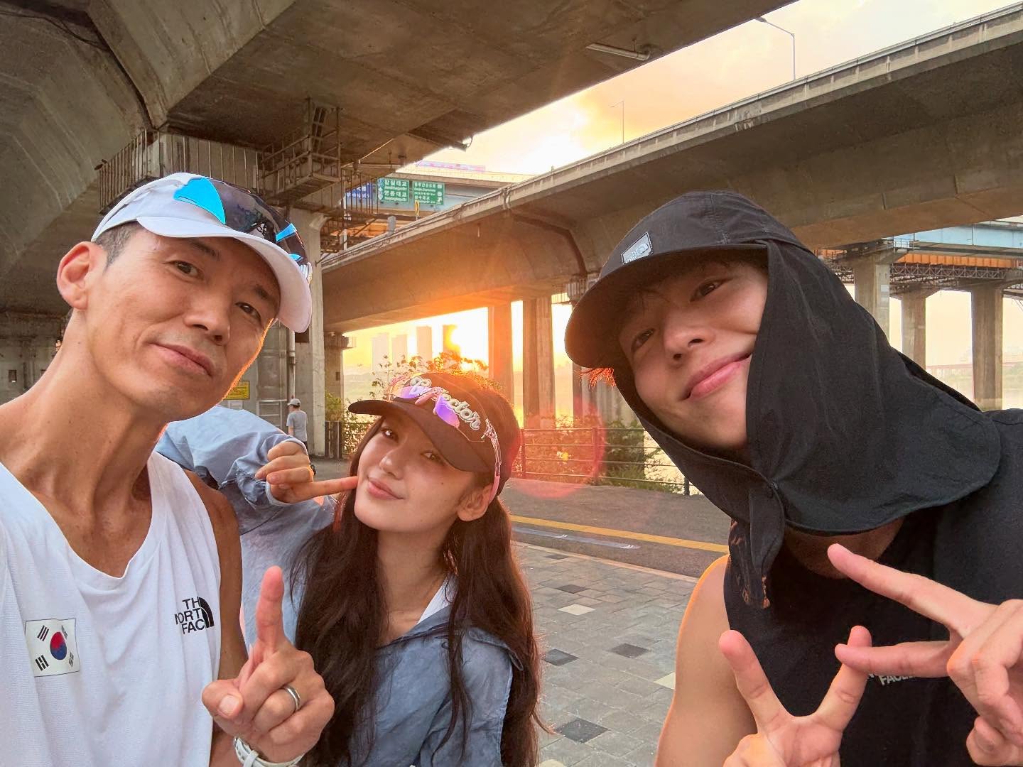 Now we bring our spotlight to NewJeans' DANIELLE! Danielle has been spotted running across the Jamsu Bridge (which runs beneath Banpo Bridge) alongside Sean, a famous Korean singer, and actor Park Bo-gum.