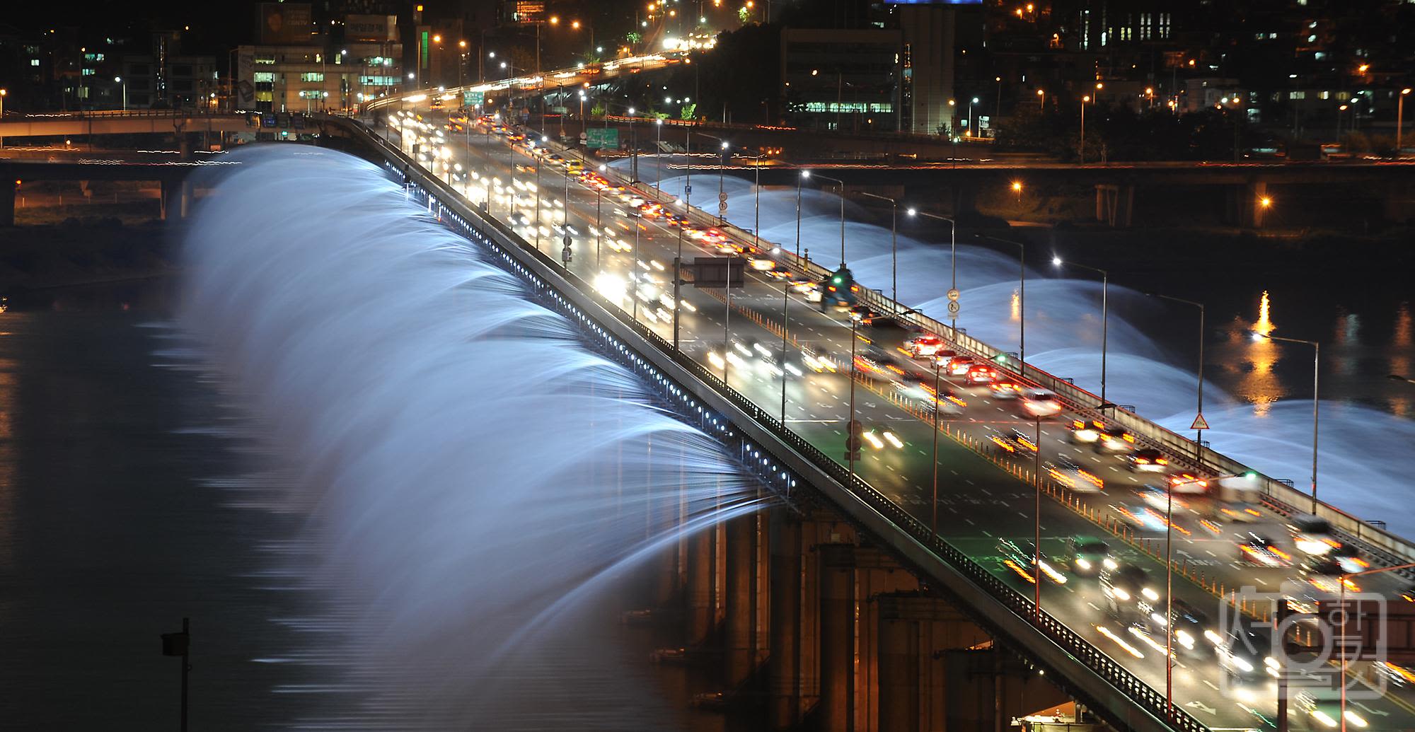Jamsu Bridge is a famous tourist spot that even hosted SEVENTEEN’s 10th-anniversary concert! Every year from April to October, it becomes a top date spot, hosting the spectacular "Moonlight Rainbow Fountain" show, which is also the longest bridge fountain in the world. You can enjoy the fountain from a distance at Banpo Hangang Park, or you can run across Jamsu Bridge and fully enjoy the cool water splashing right over your head!