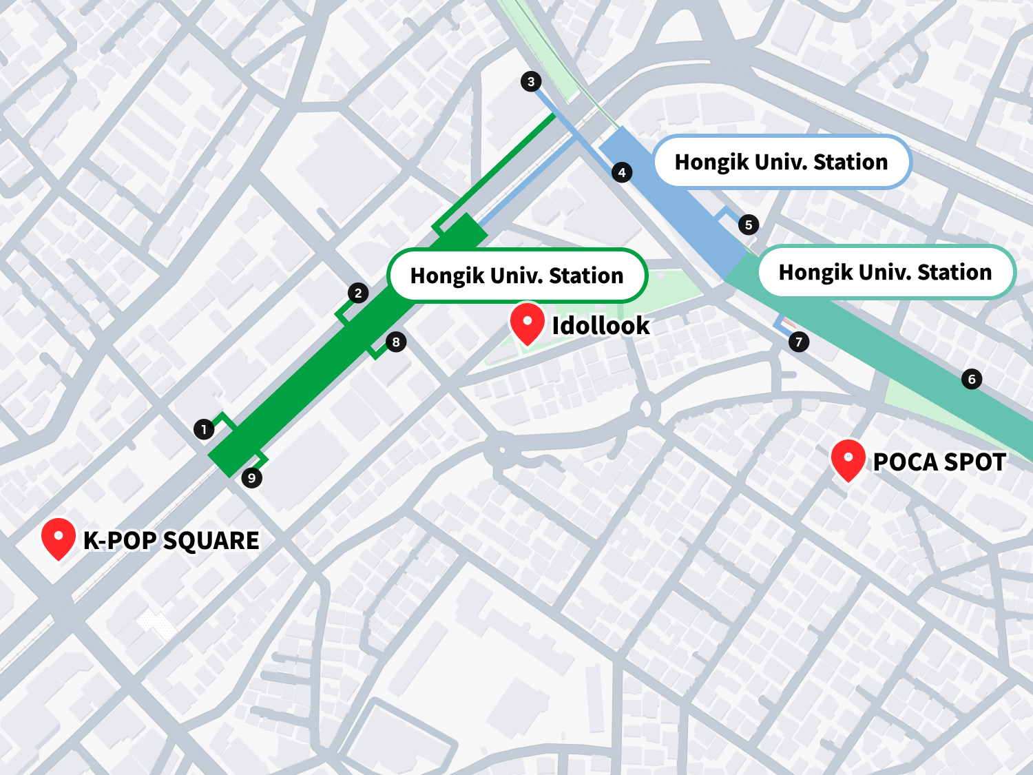 Many merch shops near Hongik Univ. Station open late (11 AM, 1 PM, etc.). Don't visit too early! Since the Hongdae area is huge, pre-planning your route is highly advised to save time and effort.