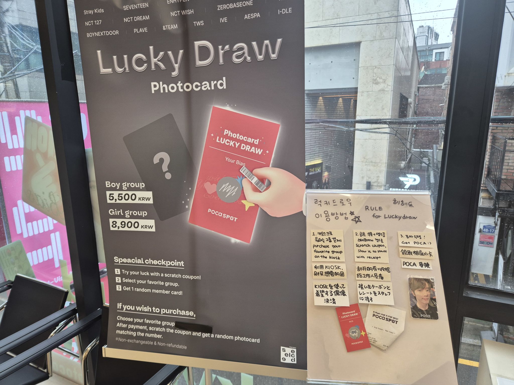 Discover this photocard haven, only a 3-minute walk from Hongdae Station Exit 7. Level 2 is dedicated to random photocard pulls, and Level 3 lets you hand-select and purchase your preferred photocards. The sight of walls lined entirely with photocard displays is a thrilling experienceโ€”pure dopamine for every K-POP fan!