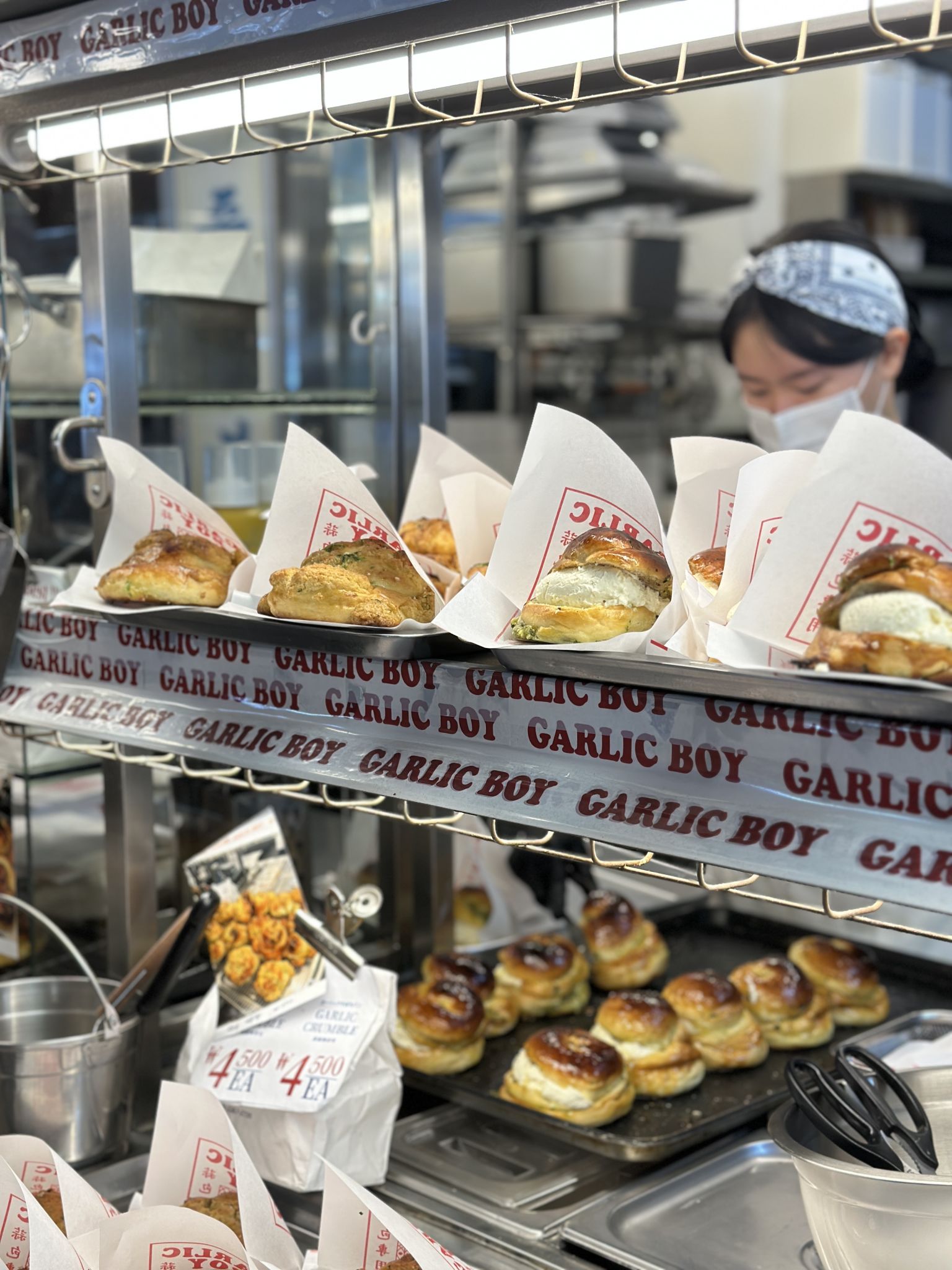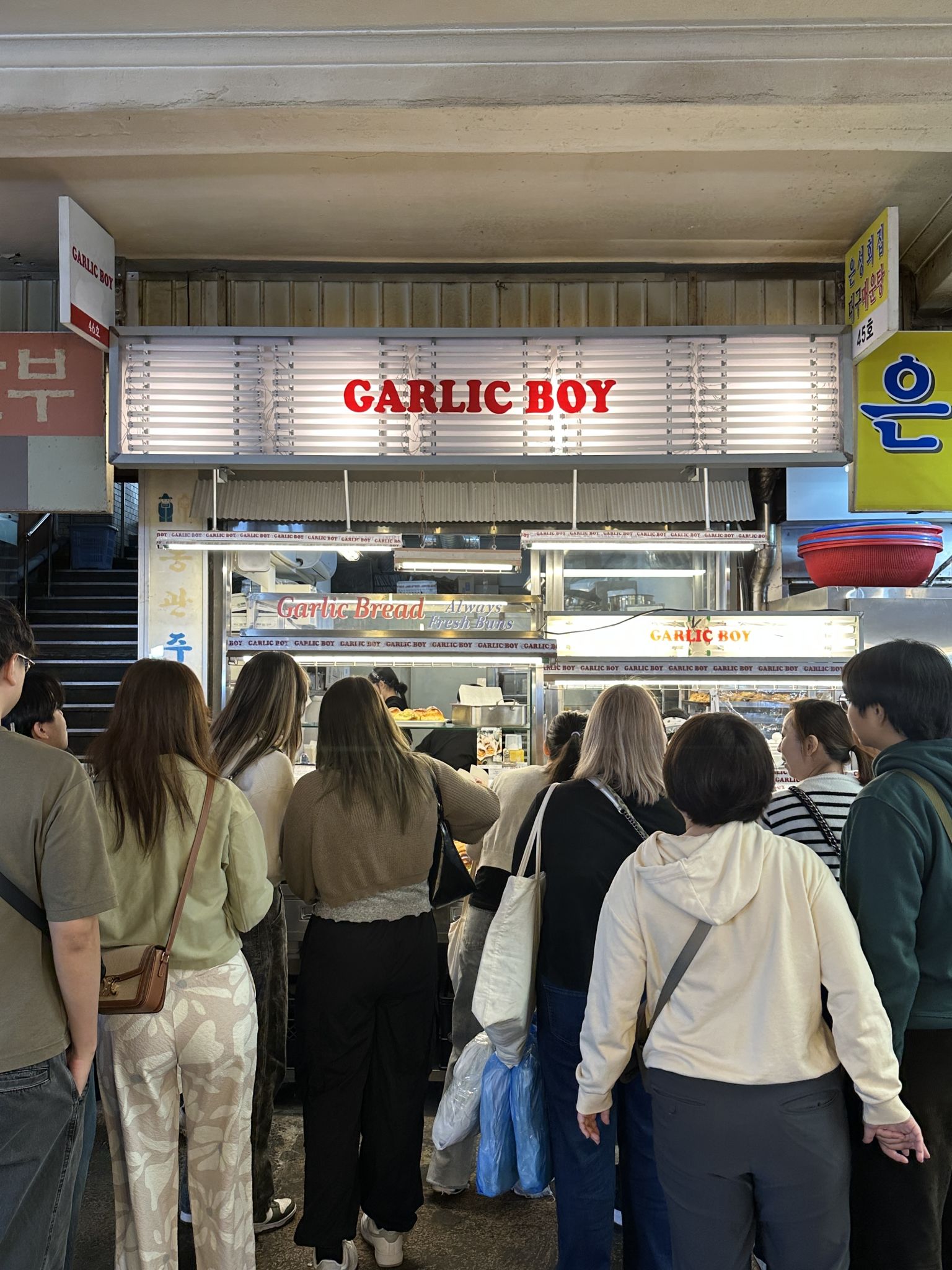 If you've been tracking the source of that savory, buttered aroma that wafts from afar, then you've found Garlic Boy. They offer garlic bread with diverse twists, incorporating cream, cheese, and ham. Not only is the bread visually appealing, but the exotic interior will instantly grab your attention. 📌 You can find it immediately after entering the market from the main road, passing through the Yukhoe (Beef Tartare) Alley 💵 Average Budget: Approx. ₩4,000–₩6,000 per person (e.g., Garlic Bread ₩3,900, Truffle Cream Garlic Bread ₩5,300, etc.)