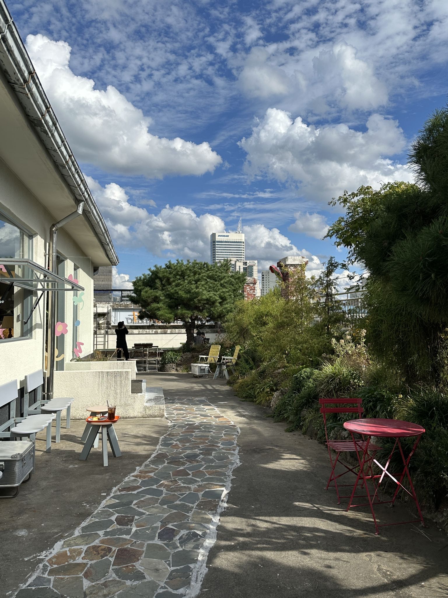 This is a rooftop garden brunch café so modern and hip that one might find it surprising to find the place inside the market. It will be the perfect resting spot, offering a beautiful view whether the weather is sunny or rainy. 📌 Look for the KB Kookmin Bank building nestled among the fabric shops! The café is located on that building's rooftop. 💵 Average Budget: Approx. ₩10,000–₩20,000 per person (e.g., Americano ₩5,500, Basque Cheesecake ₩6,000, Brie Cheese Sandwich ₩17,000, etc.)