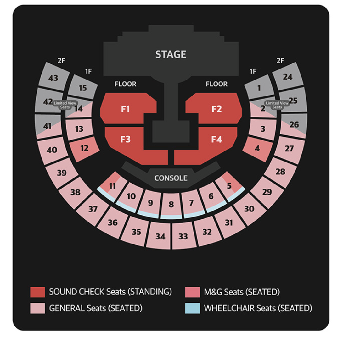 The venue operates with both a STANDING section (Floor) and SEATED sections (1st floor and 2nd floor tiered seating). Please check your ticket for your seat section.