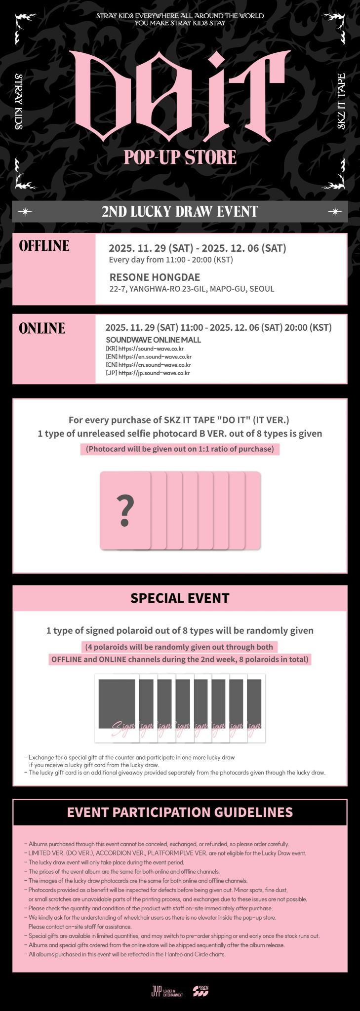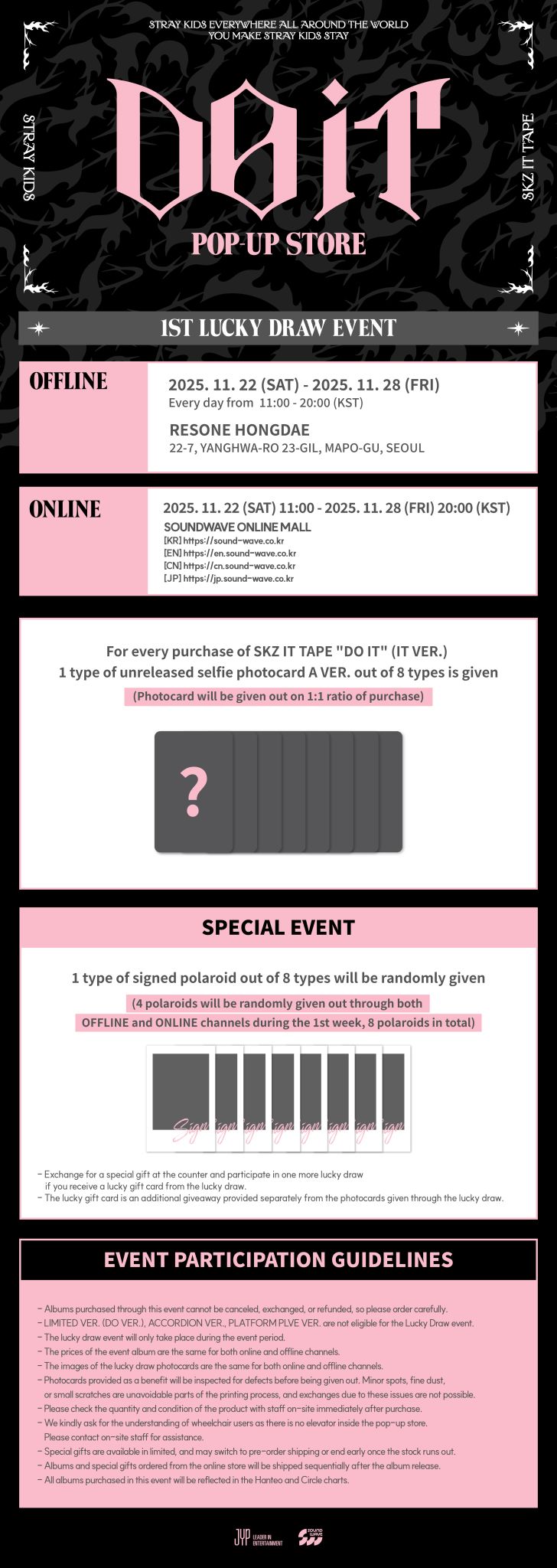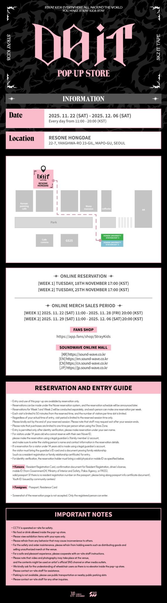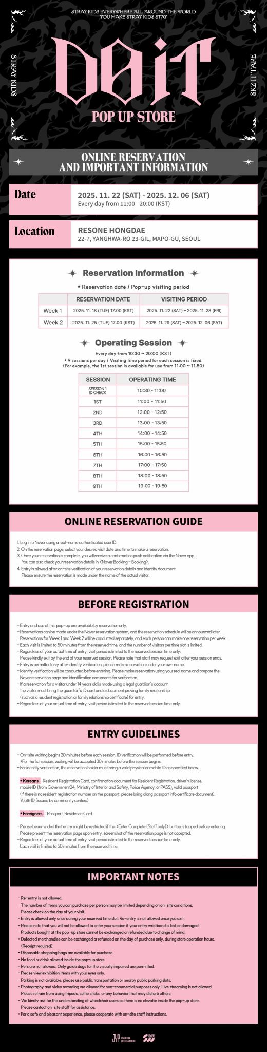 - Stray Kids is opening a special pop-up store to celebrate the release of their new album 'SKZ IT TAPE' on November 21st 🎉 Stray Kids, who announced a grand comeback with 'Do It' and 'Shinseon Nori' as double title tracks! The pop-up store will be filled with various events, including limited edition MD and lucky draws, to make the comeback even richer. The pop-up store can only be visited by pre-booking, and official MD will also be sold online. Click 'See More' for details! 📍RESONE Hongdae 🗓️ 2025.11.22(Sat) - 2025.12.6(Sat)
