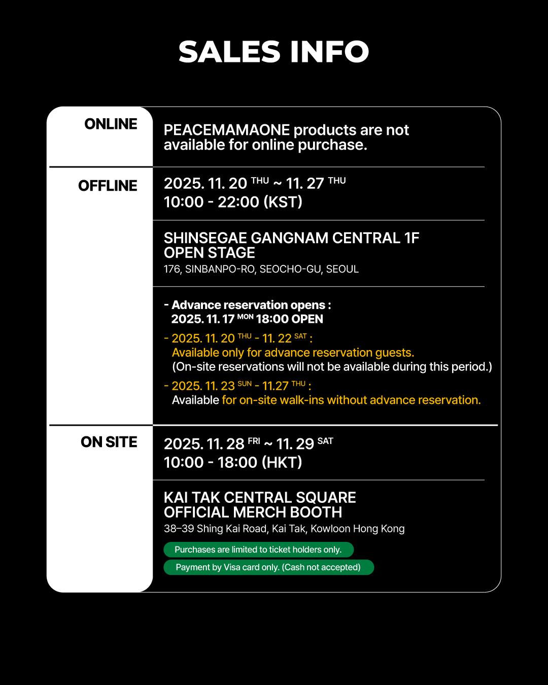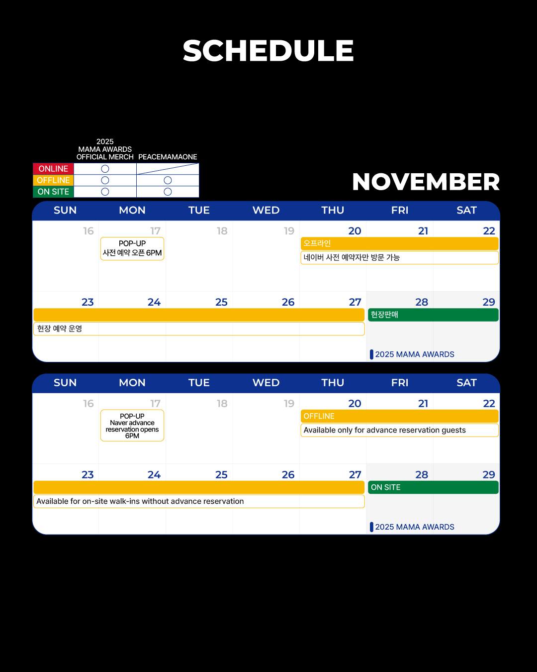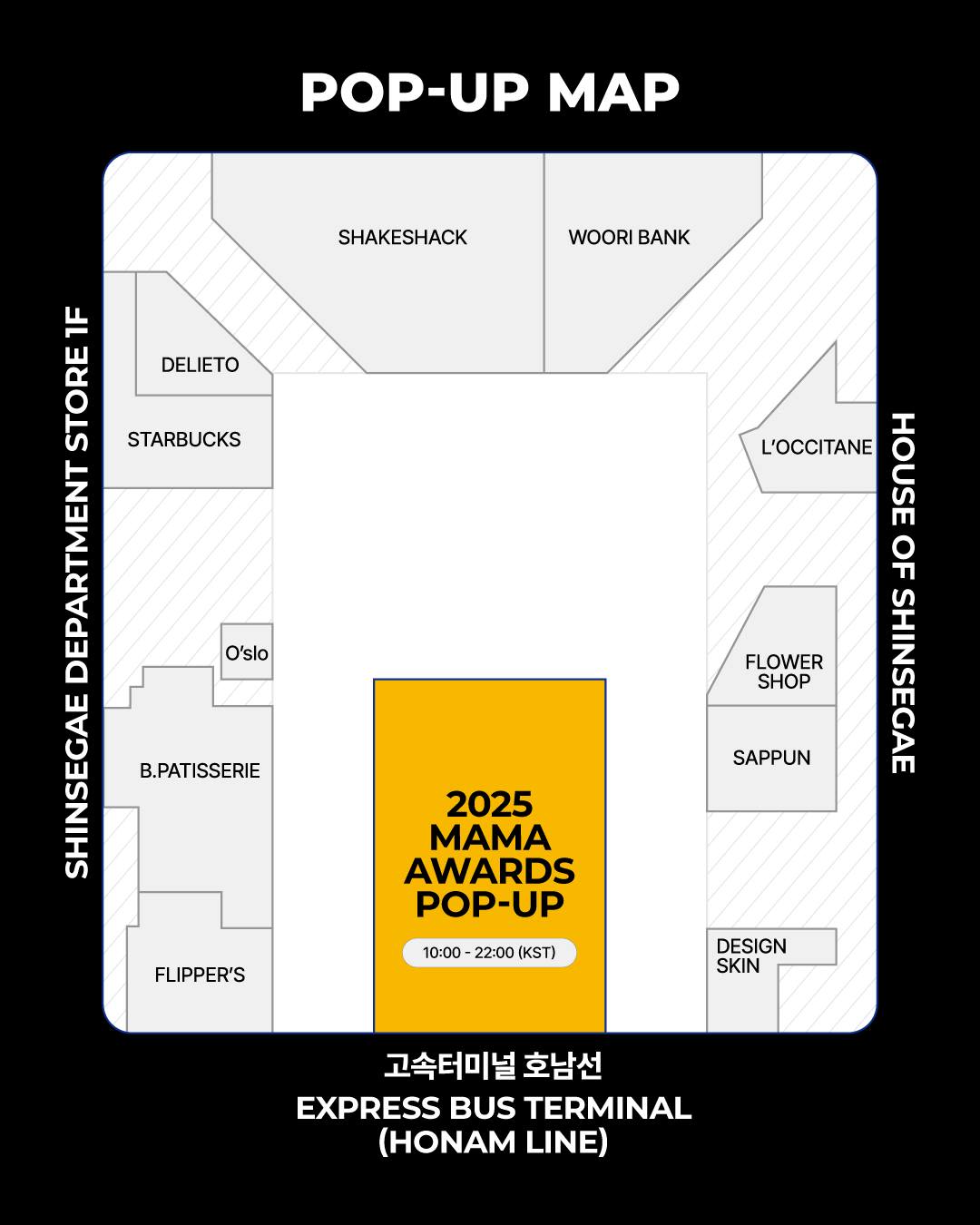 - The 2025 MAMA AWARDS will spectacularly conclude November! Ahead of its grand opening, a pop-up store will open in Seoul. Notably, G-DRAGON has confirmed his appearance at MAMA, and official merchandise created with PEACEMINUSONE will be revealed. It's called 'PEACEMAMAONE'! The logo, utilizing an iconic daisy motif, features a musical note icon, adding to the meaning of a music festival. The MD consists of figures, T-shirts, hoodies, coats, and more. Additionally, the pop-up store will showcase a special MD edition themed around this MAMA's concept, 'UH-HEUNG.' Discover items that capture the beauty of Korea. From November 20th to 22nd, only those with prior reservations can enter, so please check 'Learn More' for details. From November 23rd to 27th, entry will be available on-site by waiting. PEACEMAMAONE MD will not be sold online, while the 'UH-HEUNG' special edition can also be purchased online. š Shinsegae Gangnam Branch, Central 1st Floor, Open Stage šļø 2025.11.20 (Thu) - 2025.11.27 (Thu)