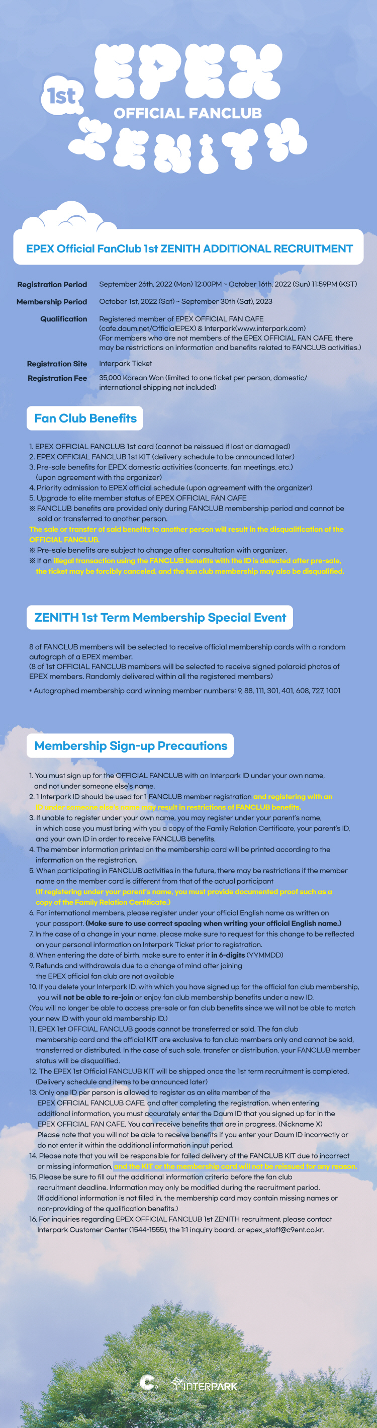 EPEX(이펙스) 공식 팬클럽 ZENITH(제니스) 1기 추가모집