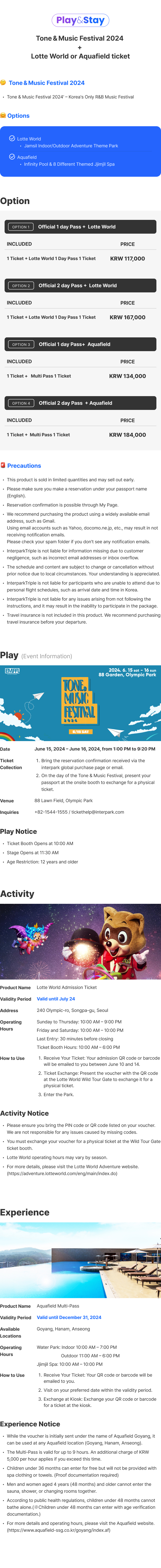 [Play&Stay]Tone & Music Festival 2024 + Lotte World or Aquafield ticket
