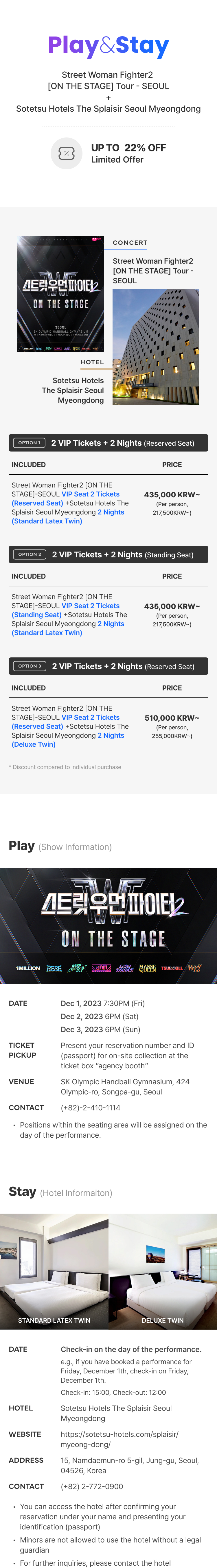 ![[Play&Stay]Street Woman Fighter2 - SEOUL+Sotetsu Hotels The Splaisir Seoul Myeongdong](https://ticketimage.interpark.com/Play/image/large/23/23015177_p.gif)