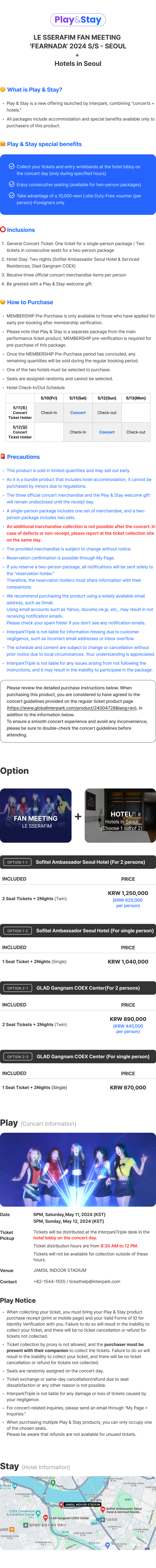 ![[Play&Stay] LE SSERAFIM FAN MEETING ‘FEARNADA’ 2024 S/S - SEOUL+Hotels in Seoul](https://ticketimage.interpark.com/Play/image/large/24/24004728_p.gif)