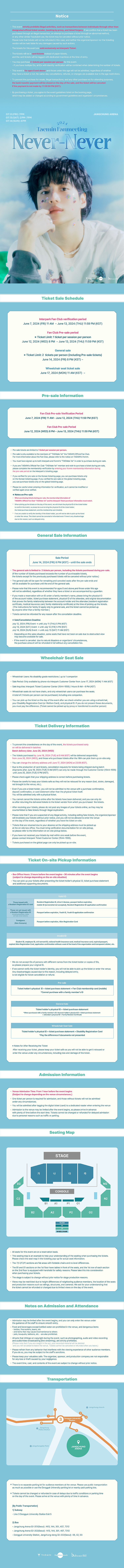 Thank you for your love and interest in the 2024 TAEMIN FANMEETING [Never-Never]. For more fans to enjoy the event, there will be an additional session open on Friday, July 12, as well as additional seats that were not sold during the initial ticket sales for the sessions on Saturday, July 13, and Sunday, July 14. Please note that some seats may have limited view due to structures or devices depending on the stage production and the artist’s location. Please note before making a purchase that cancellations, changes, and refunds on the performance day are unavailable due to the seats’ limited view.