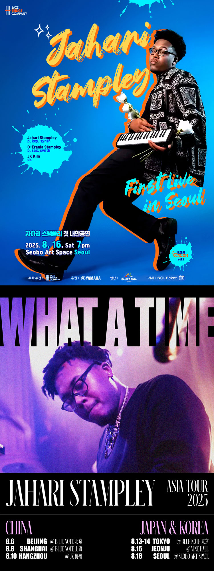 In May of 2025 Jahari released his single “To Be Alive” from his second album “What A Time” which is set to be released in Asia in July, 2025 and in the US in September, 2025. In celebration of his sophomore album release, Jahari will be touring in China (Beijing, Shanghai, Hangzhou), Japan (Tokyo) and will finally make his first appearance in Korea (Jeonju, Seoul) in mid-August. Jahari Stampley’s “First live in Korea” tour is produced by Jazz Bridge Company and is supported by Yamaha Music Korea as he’s Yamaha Artist. Don’t miss your chance to experience the sensational young virtuoso who will showcase one of the most innovative and creative jazz piano trio concerts of current generation.