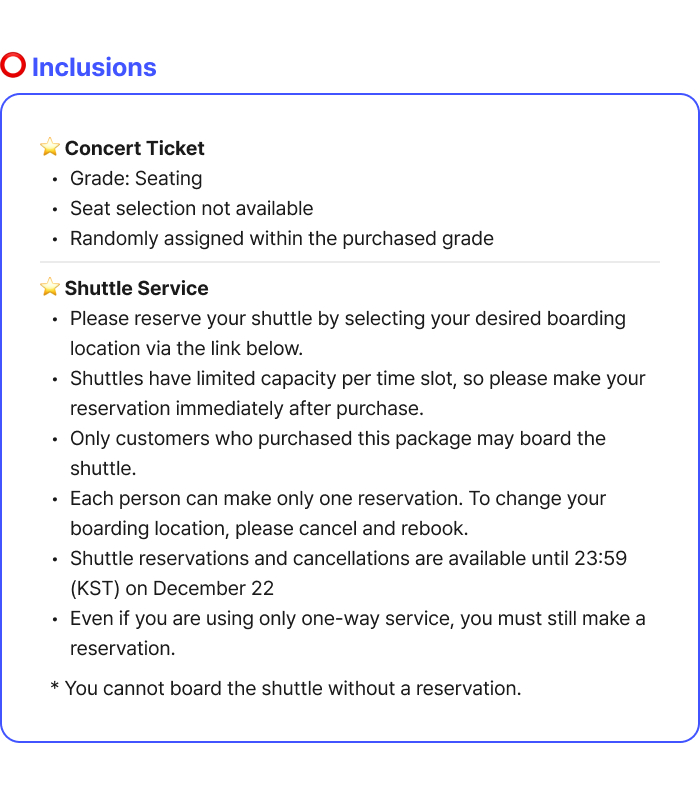 ■ Shuttle bus seat reservations are available until 11:59 PM on December 22. As seating is limited by time slot, please reserve as early as possible.
