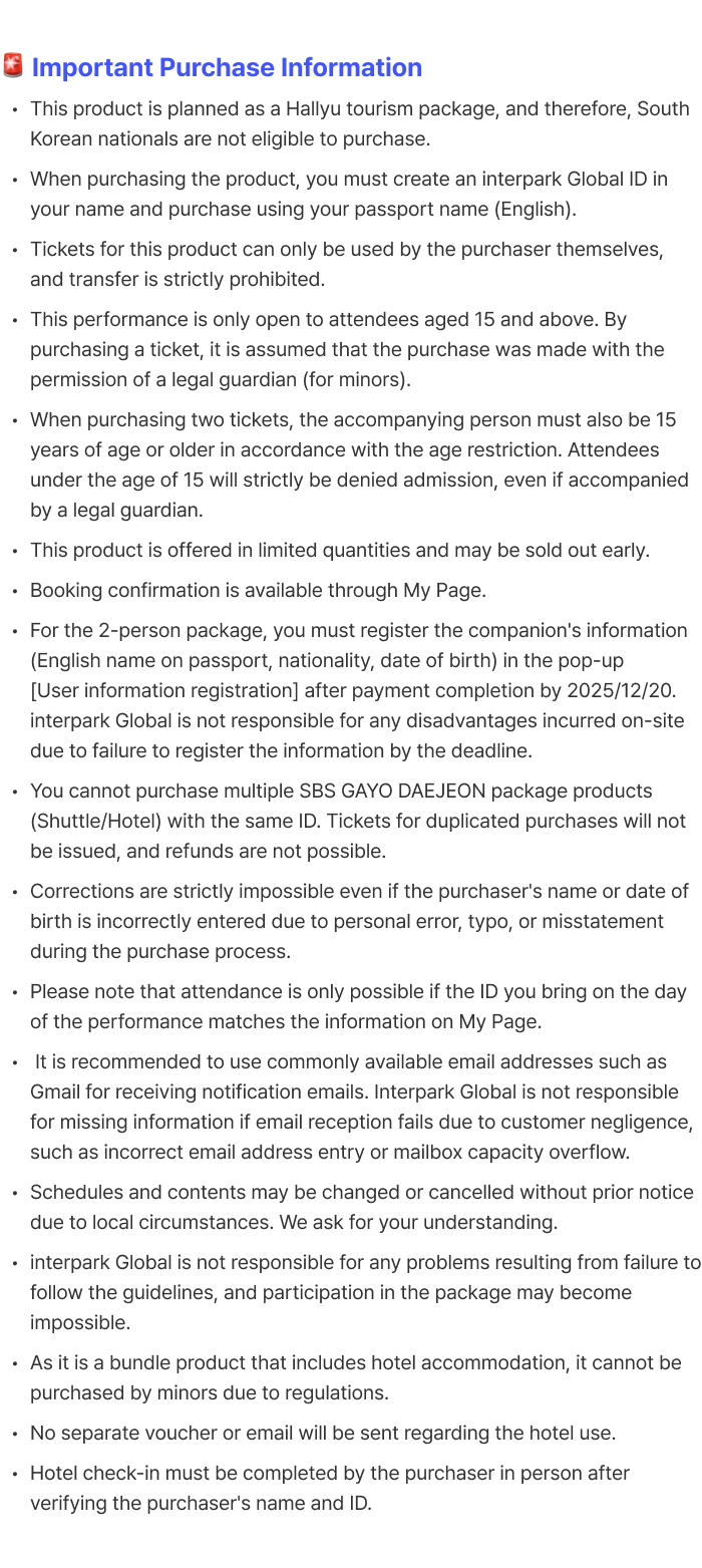 -Hotel check-in must be completed by the purchaser in person, and accommodation is only available to the purchaser.