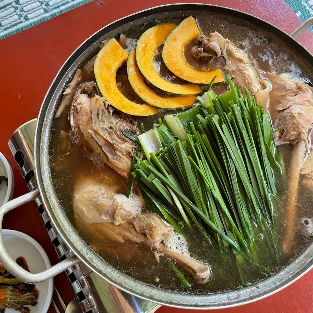 オフロードATVを楽しんだ後は、しっかりとした食事を!メンバーたちは、韓国の代表的な夏のスタミナ料理である「ペクスク(水炊き)」のお店を訪れました。 今回は普通のペクスクではなく、貴重なヌンイ(香茸)がたっぷり入った「ヌンイペクスク」。弾力のある鶏肉と深みのあるスープが、すぐに体力を回復させてくれます🥰 🧳 LOCAL TIP ✅ ペクスクとサムゲタンは似ていますが、サムゲタンには高麗人参・もち米・ナツメ・栗などの材料が入っています。 ✅ 野生で育つヌンイは貴重なスタミナ食材。香りが濃く、少し入れるだけで味に深みが出ます。 ✅ メンバーたちのように、トトリムク(どんぐりこんにゃくの和え物)と一緒に食べると相性が良いです。