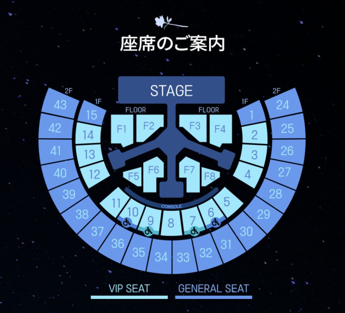 VIP席を含め、すべての座席は会場入場後に退場した場合、再入場はできません。