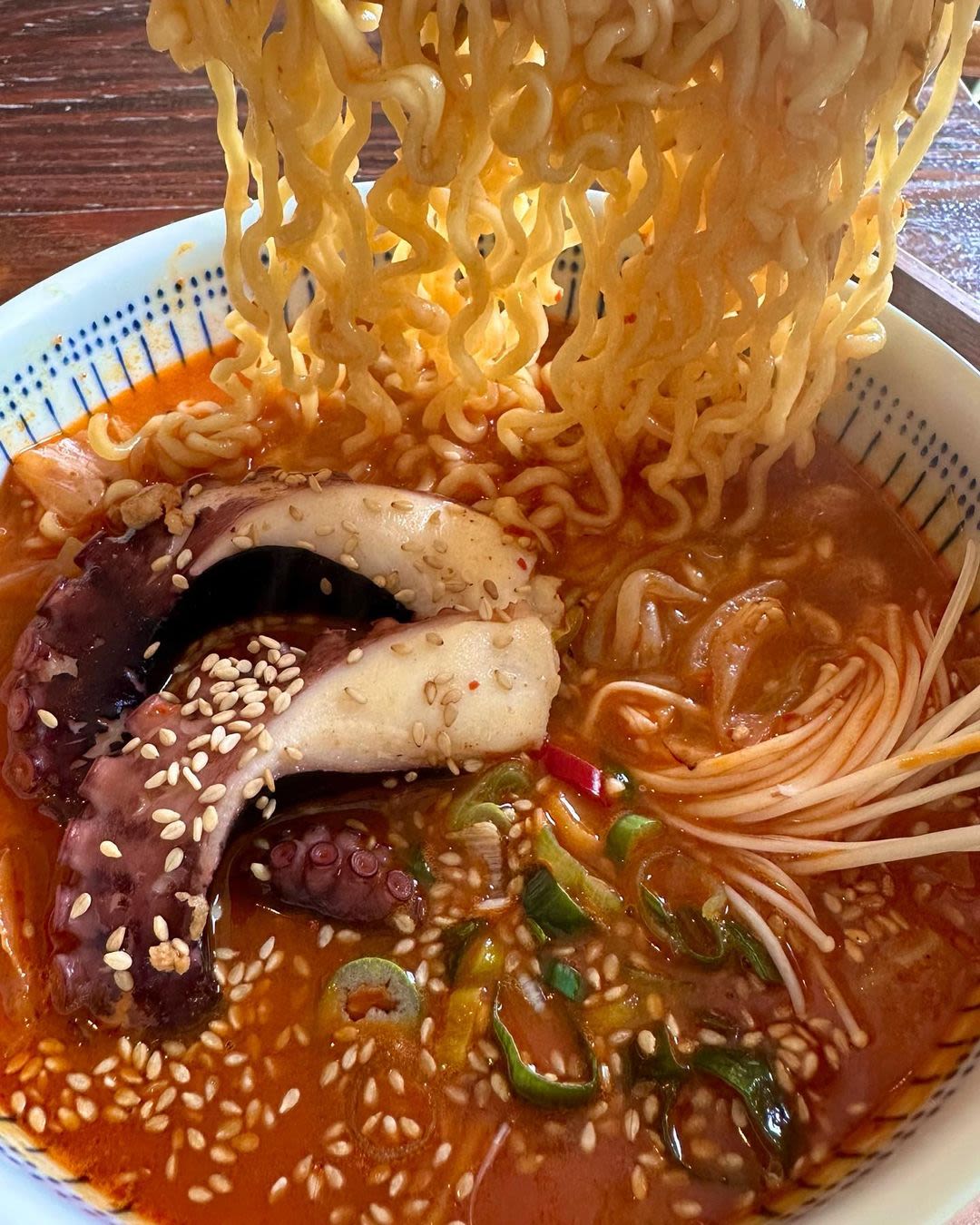 タコの足が丸ごと入ったピリ辛ラーメンがやみつきになる食堂
