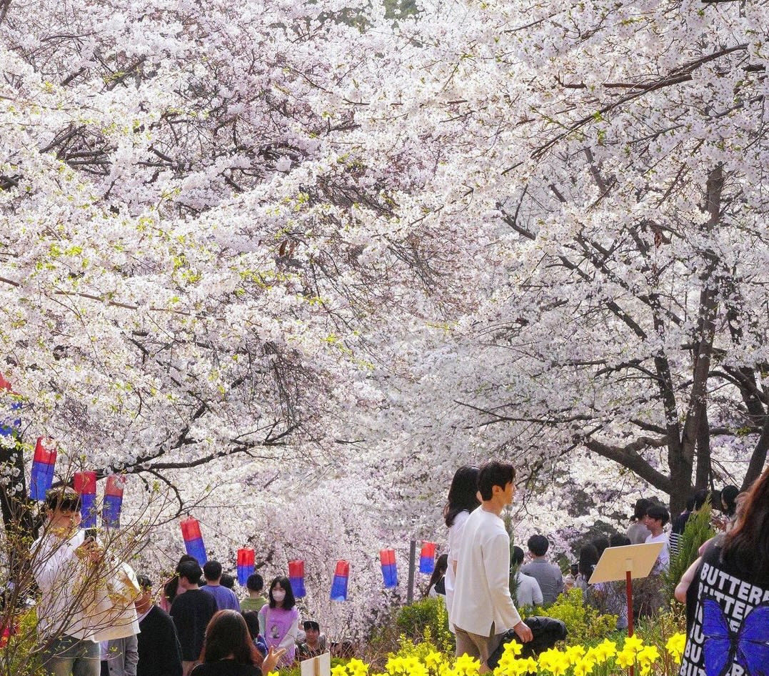 チューリップや桜の木をバックにしたとっておきの1枚が撮れる公園