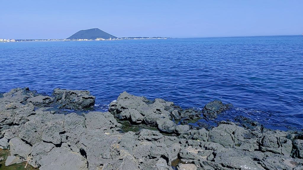 「細花(セファ)海岸」から「金寧(キムニョン)海岸」まで続く海岸道路。エメラルドグリーンの波がきらめく海と白い砂浜、玄武岩が連なる様子はまさに済州島(チェジュド)だけで見られる風景。迫力ある風力発電の風車やサーフィンをする人たちを眺めたり、カフェに立ち寄って休憩したり、フォトスポットで記念写真を撮ったりできる、人気のドライブコースです。
