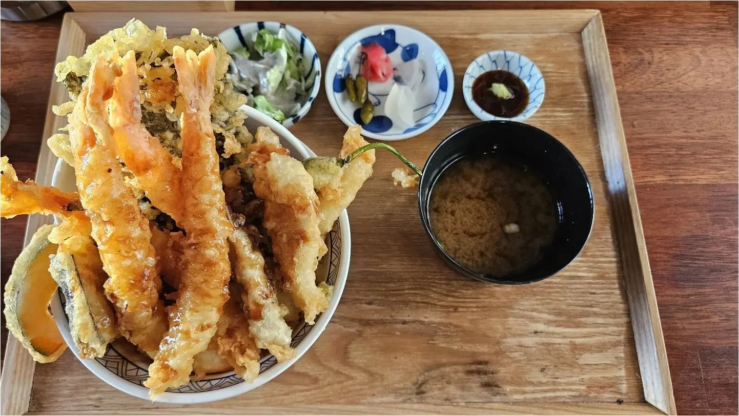 各種野菜や海産物をサクッと揚げた日本式丼ぶり専門店