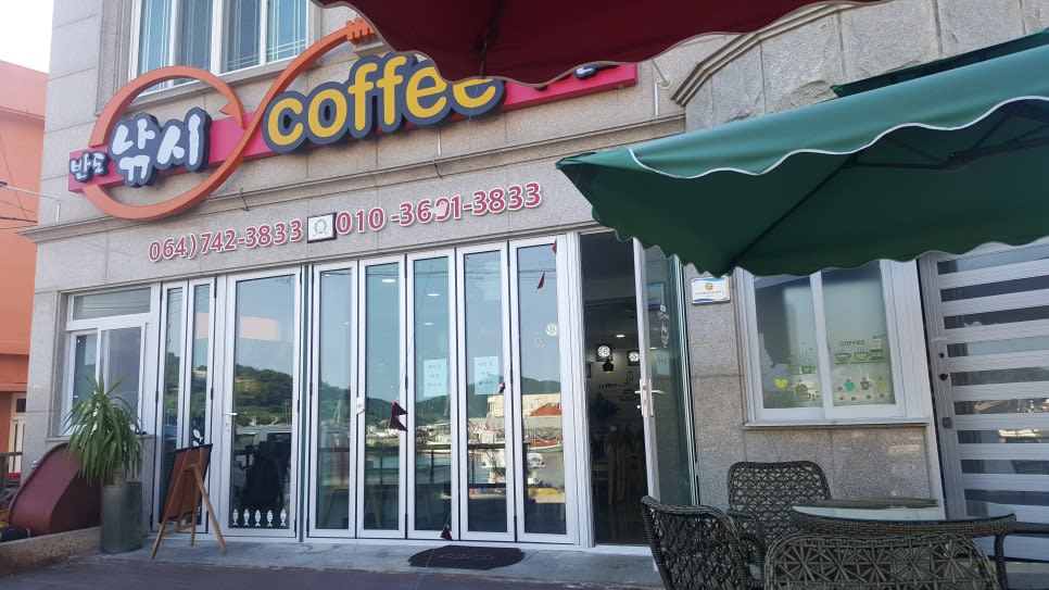 テラスに座って「楸子島(チュジャド)」の海の夜景を眺められるカフェ