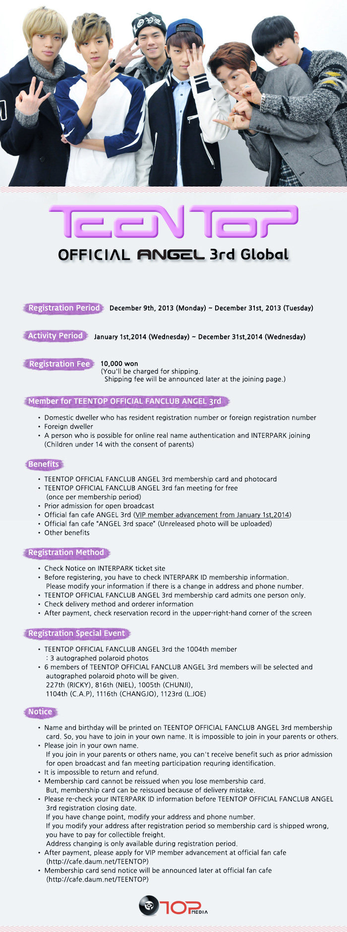 TEEN TOP 공식 팬클럽 ANGEL 3기 모집 (for foreigner)