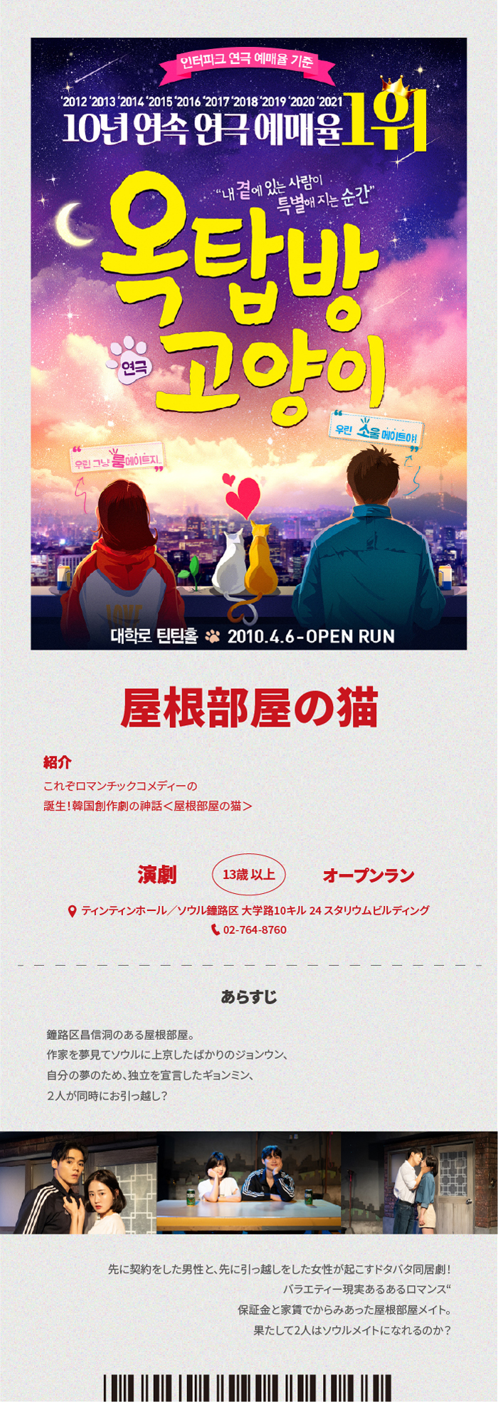 韓国社会で同棲に対する否定的なムードが漂うなか、同棲ストーリーを率直に、堂々と描いた「屋根部屋のネコ」は予想外の爆発的な人気を呼んだ。その人気に乗り、同年に本として出版され、最高のベストセラーになった。キム・ユリ氏は言う。「住んでみてから結婚しよう!」