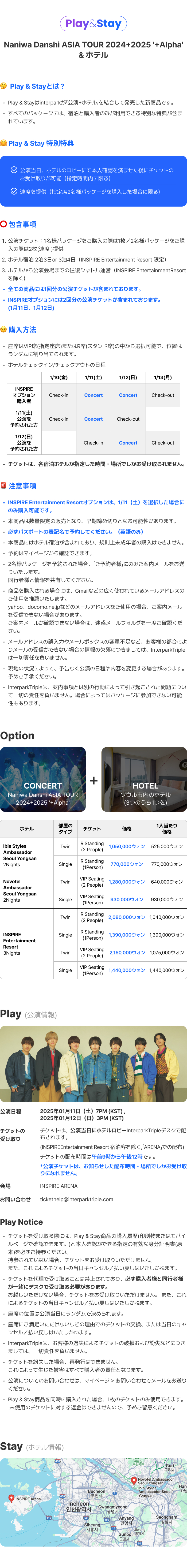 ![[Play&Stay]Naniwa Danshi ASIA TOUR 2024+2025 '+Alpha' & Hotels in Seoul](https://ticketimage.interpark.com/Play/image/large/24/24012154_p.gif)