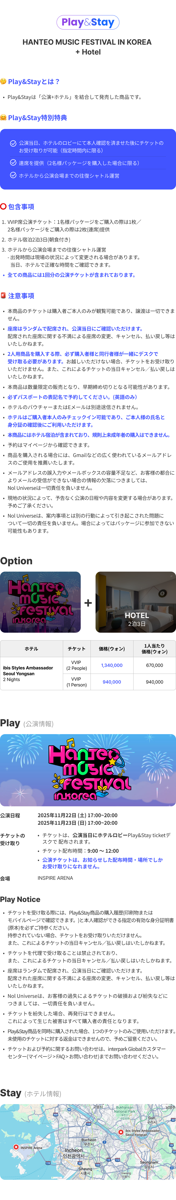 -チケット受取:ホテル内のPlay&Stayチケットデスク(9時~12時)