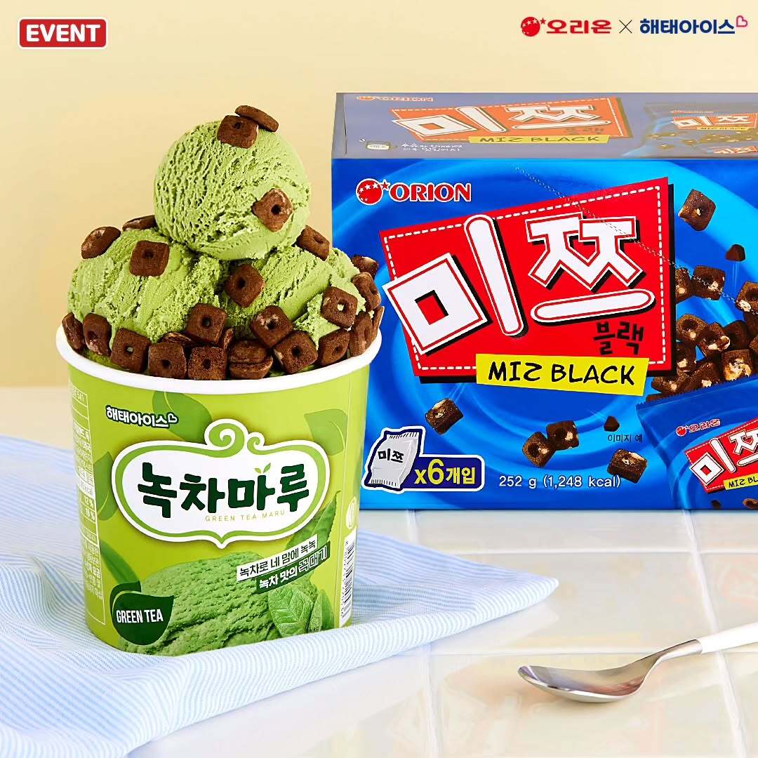 🍪 Tips: 别忘了试试“끼아정 (Ki-A-Jung)”!这是一位 BRIIZE 为了热爱绿茶的昭熙特别研发的组合,用 “绿茶冰淇淋 (Nokcha Maru)” 加上“MIZ 巧克力饼干” 一起吃,味道绝绝子!