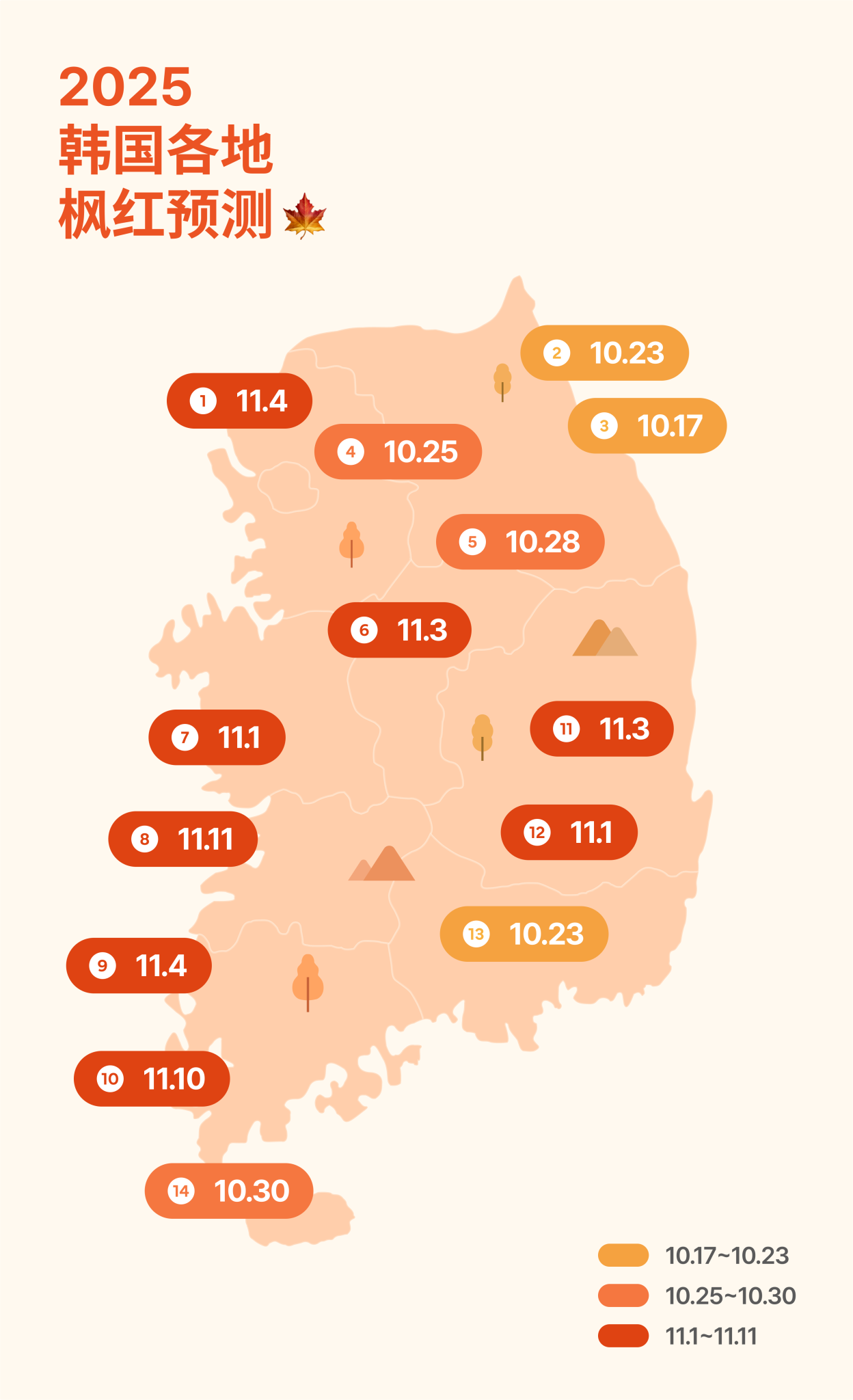 2025 年韩国枫红时间