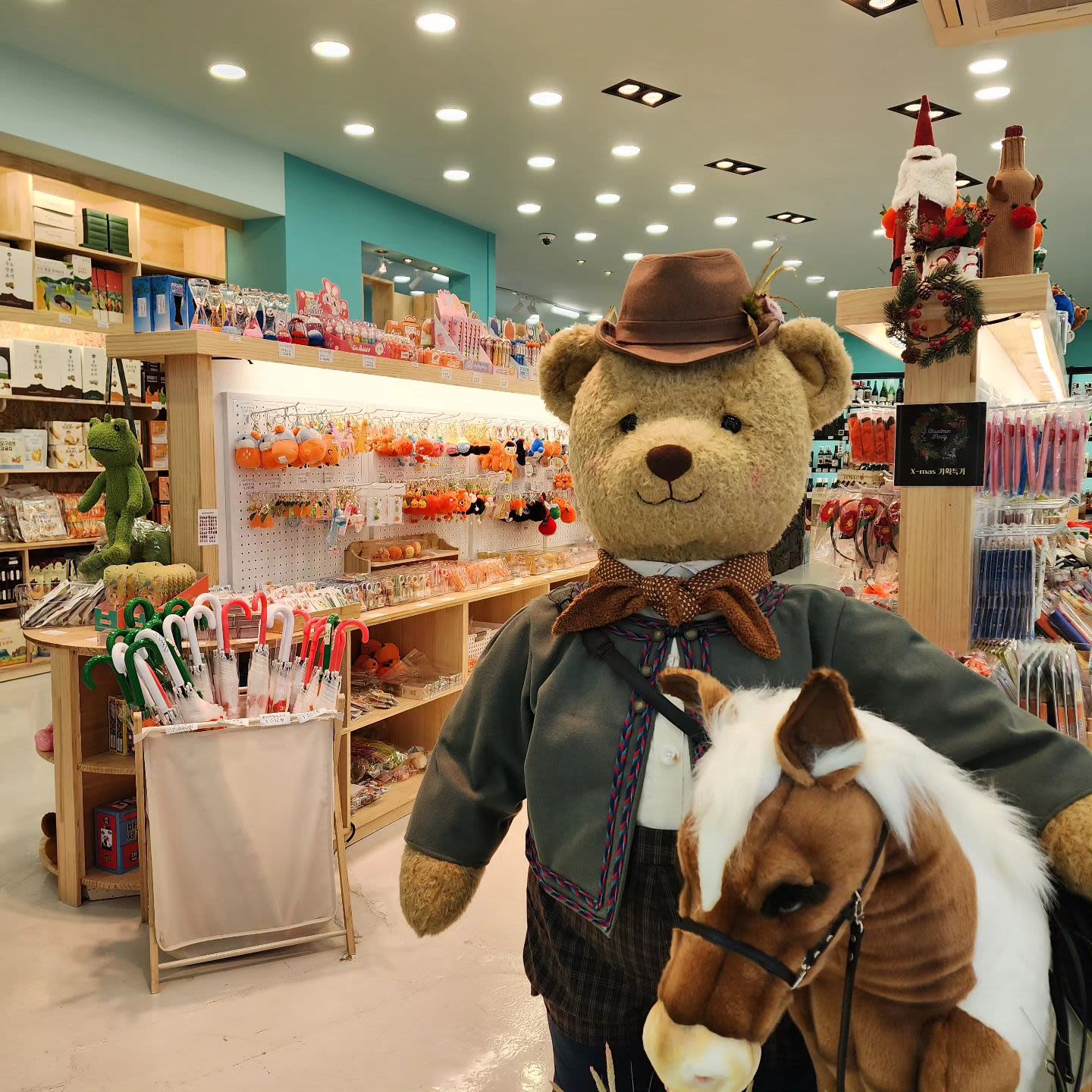 展示可爱熊玩具和济州情怀纪念品的吸睛商店