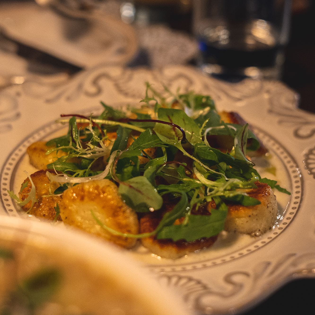 用济州土豆制作的饺子,搭配烤核桃、戈尔根朱拉奶油酱等的菜单