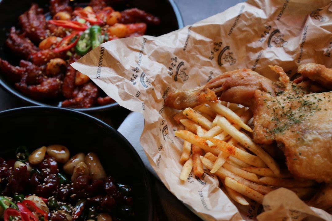 连锁炸鸡店,提供酥脆炸鸡与烤鸡胗套餐