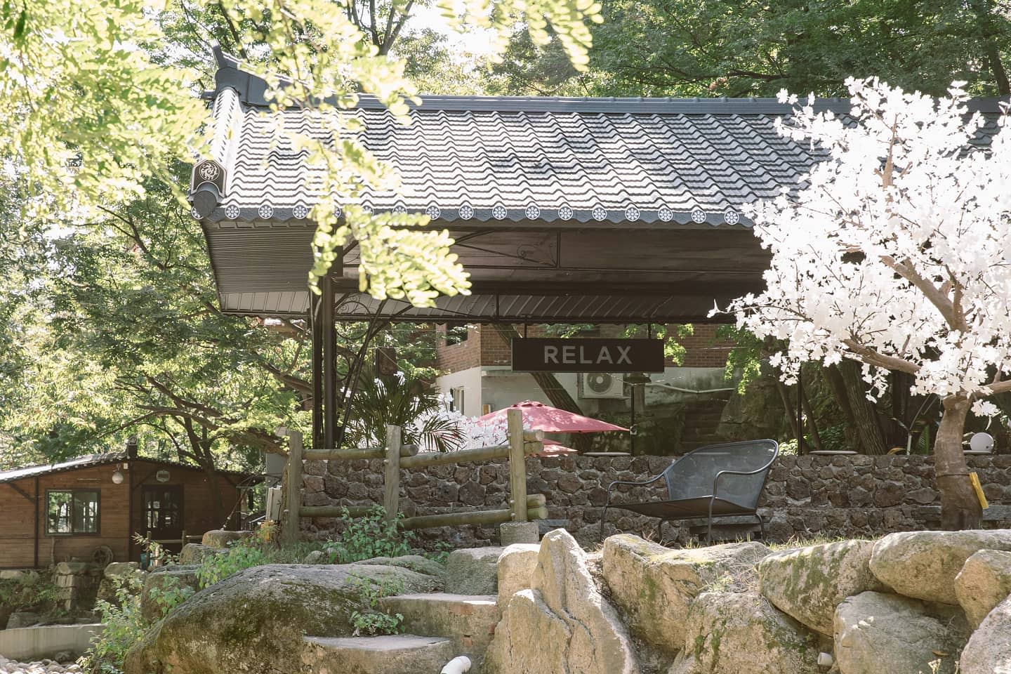 咖啡厅,坐在户外的凉亭上,眺望溪水流淌的风景,适合放松身心
