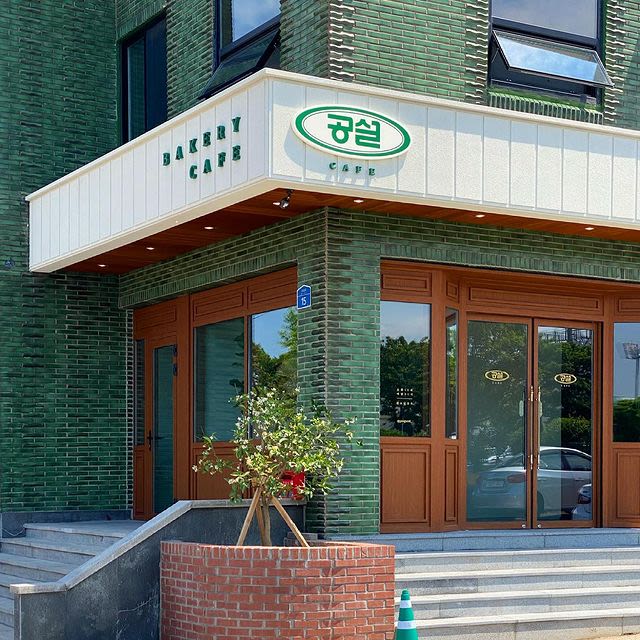 古朴的绿色外观和复古氛围的独特咖啡厅