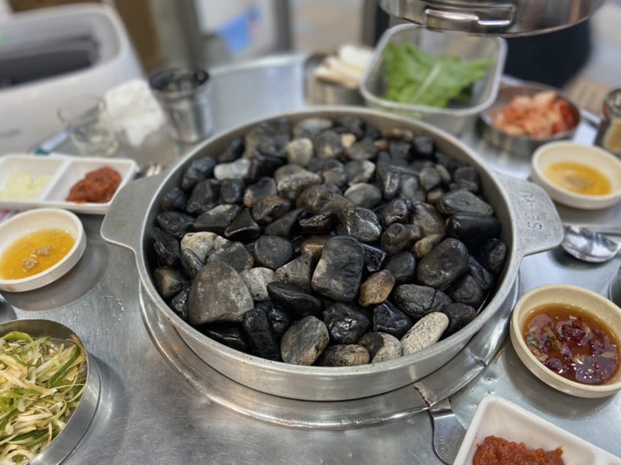 烧烤店,可以在炭火加热的玉石上烤制多汁生肉的特色店