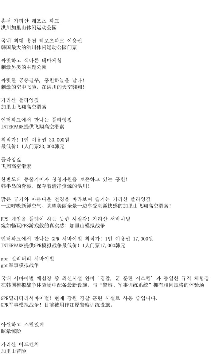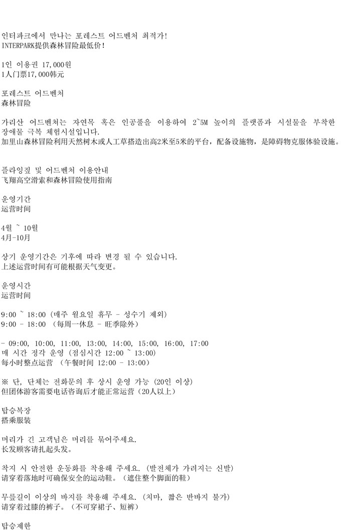 韩国最大的洪川休闲运动公园门票(森林冒险)