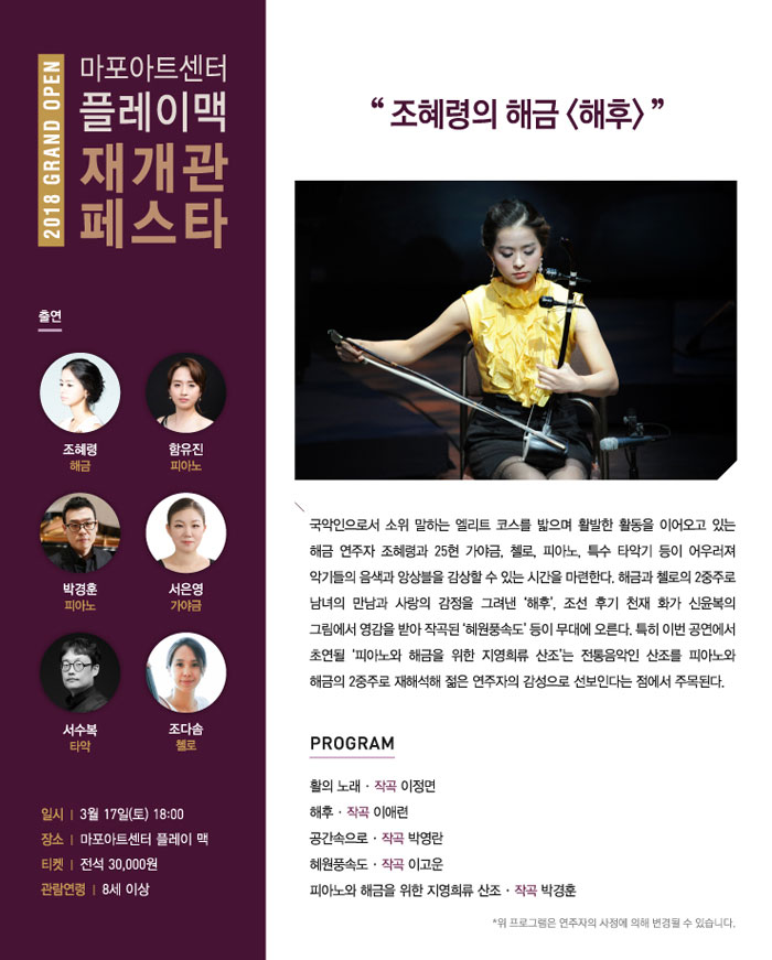 [2018 Mapo Art Center PlayMac Reopen Pesta] Jo Hyeryeong's 奚琴〈HEAHU〉