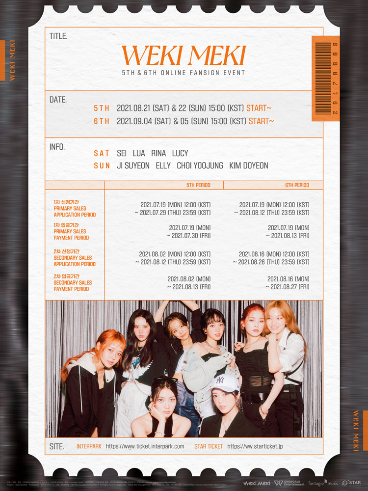 Star Ticket HP(https://www.starticket.jp/2021/07/16/weki-meki-05-06-ko/)를 반드시 확인해 주세요.