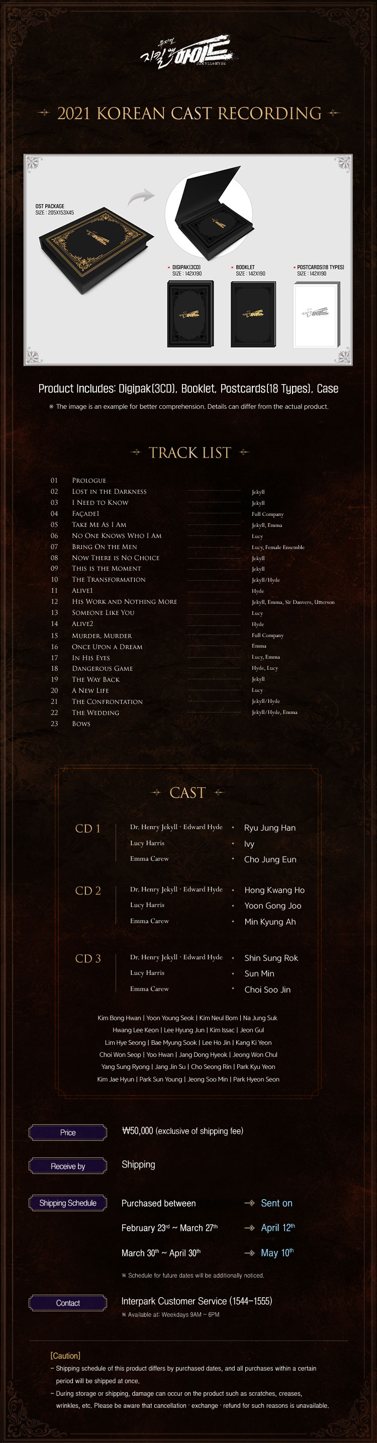 This page is for international order of the Musical Jekyll & Hyde 2021 Korean Cast Recording (OST)