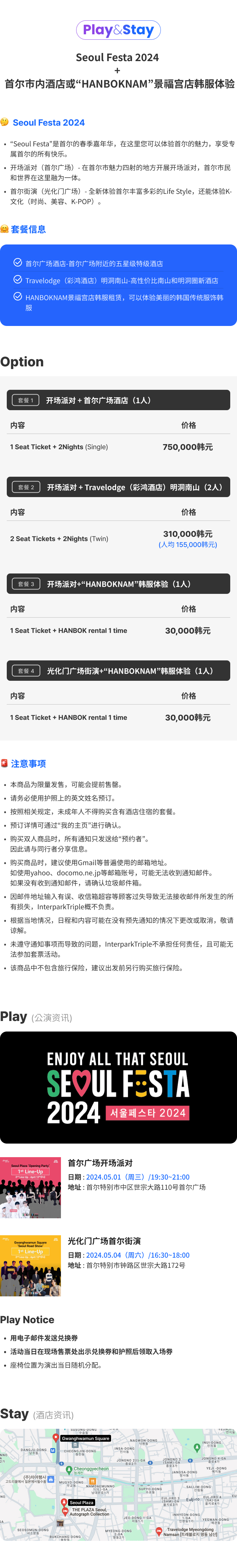 [Play&Stay]“Seoul Festa 2024” + Hotels in Seoul or Experience
