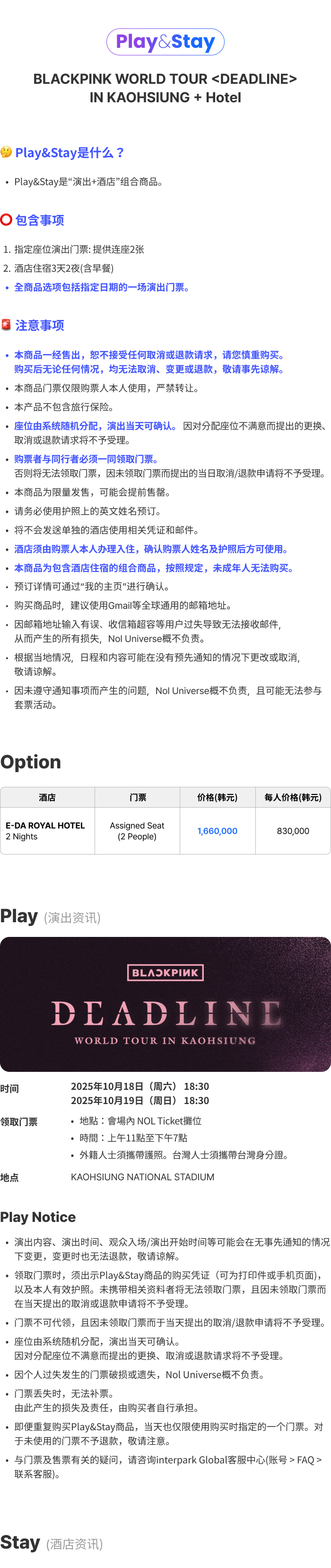 [Play&Stay]BLACKPINK WORLD TOUR 〈DEADLINE〉 IN KAOHSIUNG + Hotel