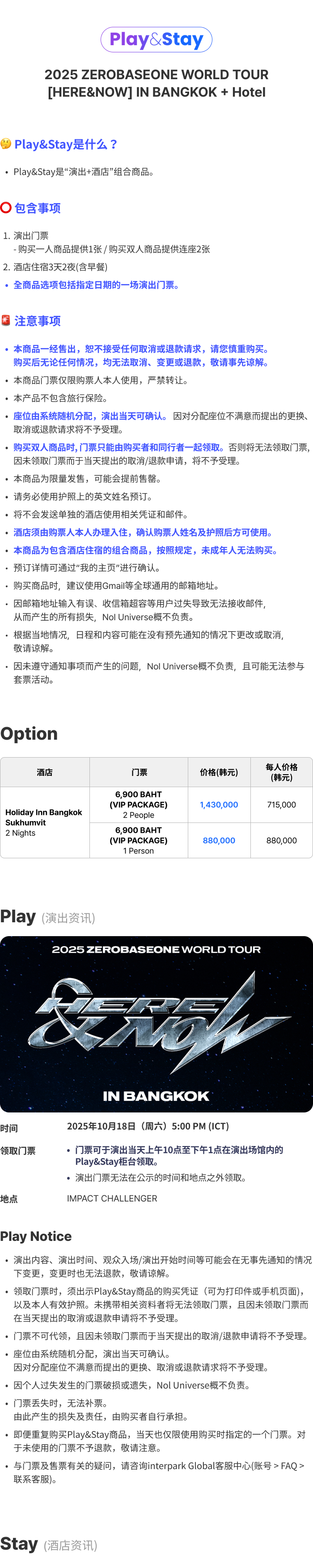 -本商品由 ㈜NOL Universe 预先采购并确定的演唱会门票及酒店组成,因此适用 特别条款。