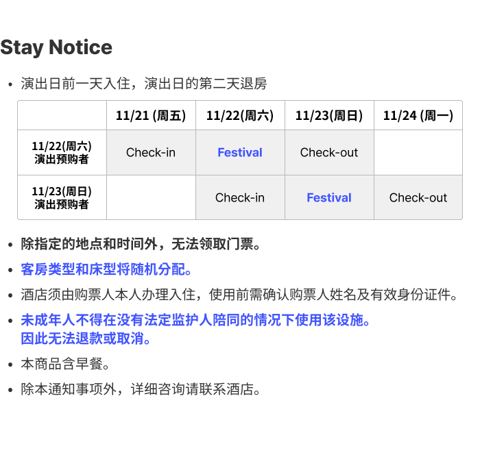 -酒店入住仅限购票人本人办理,若购票人为未成年人,必须由法定监护人陪同入住。